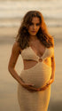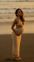 Mumsmode Zwangerchaps Midijurk Rugloos Zijsplit Middenrif Fotoshoot Abrikoos