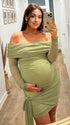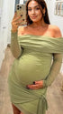Mumsmode Zwangerchaps Mini Fotoshoot Jurken Elegant Mode Tule Gekreukt Off Shoulder Bodycon Groen