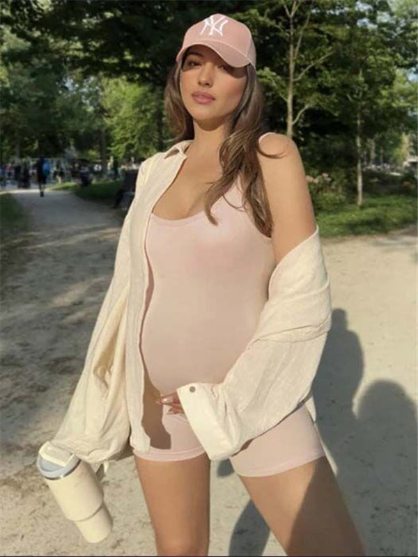 Mumsmode Zwangerchaps Rompers Rugloos Spaghetti Sport Roze