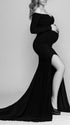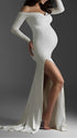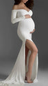 Mumsmode Zwangerschap Maxi Bodyconjurk Fotoshoot Babyshower Off Shoulder Zijsplit