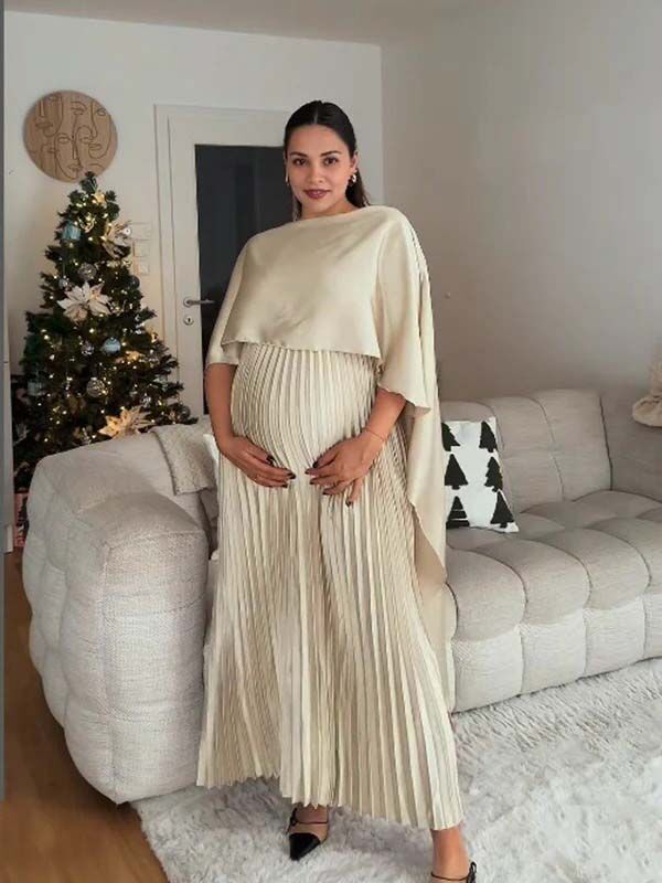 Mumsmode Zwangerschaps Avond Jurken Elegant Fotoshoot Onregelmatig Ruches Geplooid Gedrapeerd Maxi Jurken