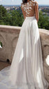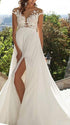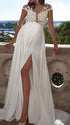 Mumsmode Zwangerschaps Avond Trouwjurken Kanten Jurken Zijsplit Backless V-hals Wit