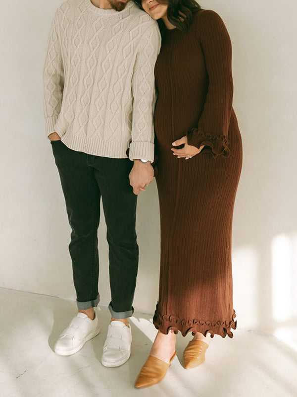 Mumsmode Zwangerschaps Bodycon Jurken Elegant Ceremonie Gebreide Ruches Rugloos Maxi Jurken