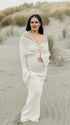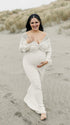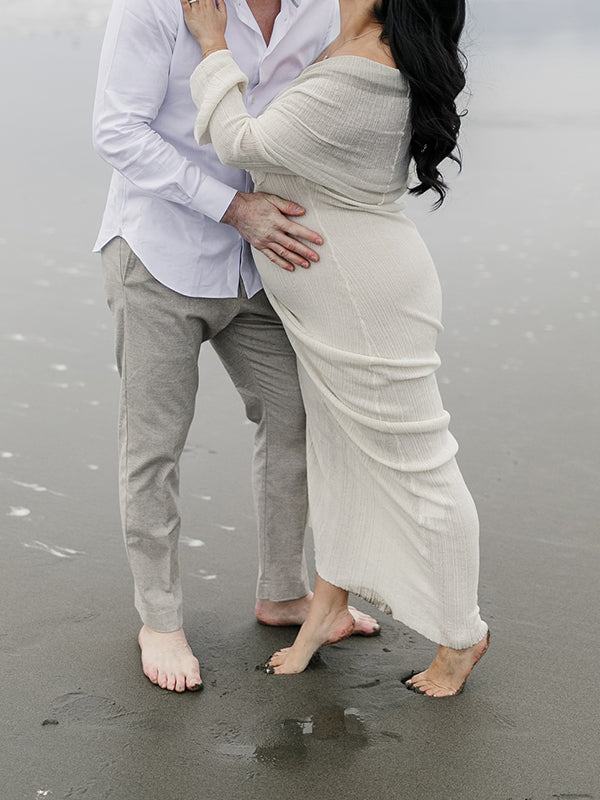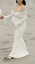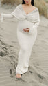 Mumsmode Zwangerschaps Bodycon Jurken Elegant Ceremonie Gekreukt Kleurverloop Off Shoulder Maxi Fotoshoot Jurken