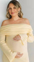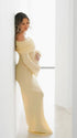 Mumsmode Zwangerschaps Bodycon Jurken Elegant Ceremonie Gestreept Gekreukt Off Shoulder Maxi Jurken