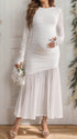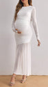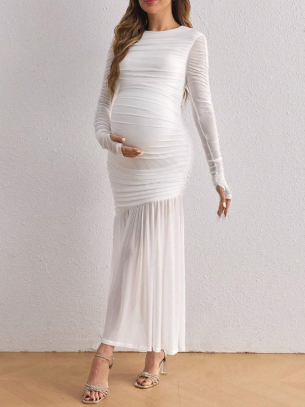 Mumsmode Zwangerschaps Bodycon Jurken Elegant Ceremonie Tule Gekreukt Maxi Jurken