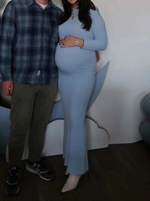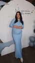Mumsmode Zwangerschaps Bodycon Jurken Elegant Ceremonie Zeemeermin Lichtblauw Maxi Jurken