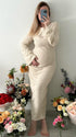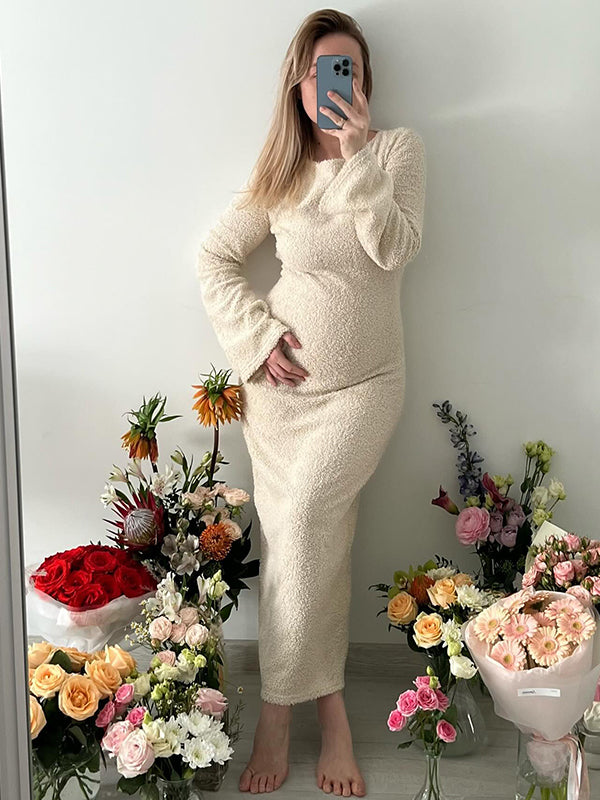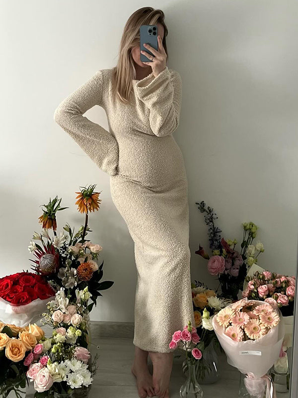 Mumsmode Zwangerschaps Bodycon Jurken Elegant Dagelijks Gebreide Harig Flare Mouw Maxi Fotoshoot Jurken