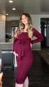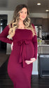 Mumsmode Zwangerschaps Bodycon Jurken Elegant Dagelijks Riem Bourgondië Midi Jurken