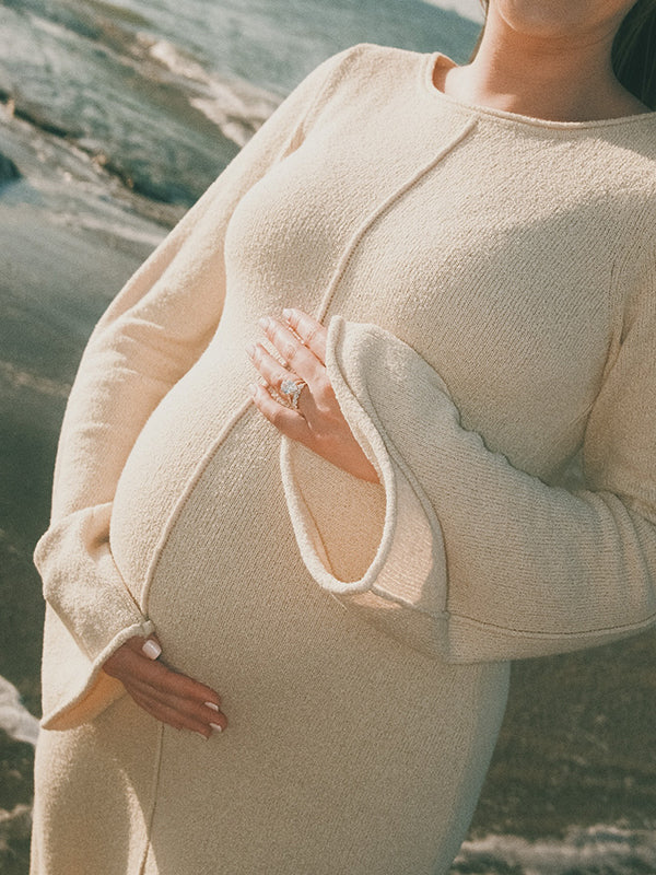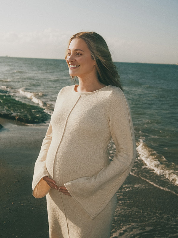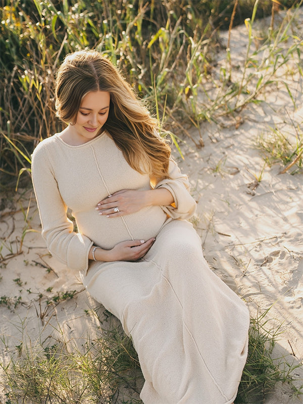 Mumsmode Zwangerschaps Bodycon Jurken Elegant Fotoshoot Gebreide Gestreept Zeemeermin Maxi Daily Jurken