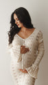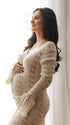 Mumsmode Zwangerschaps Bodycon Jurken Elegant Ruches Enkele Borst Uithollen Maxi Fotoshoot Jurken