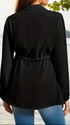 Meet met een zacht meetlint vanaf de naad van het hoogste punt van je schouder & tot aan je zij. De lengte van het kledingstuk wordt gemeten tot aan de zoom.