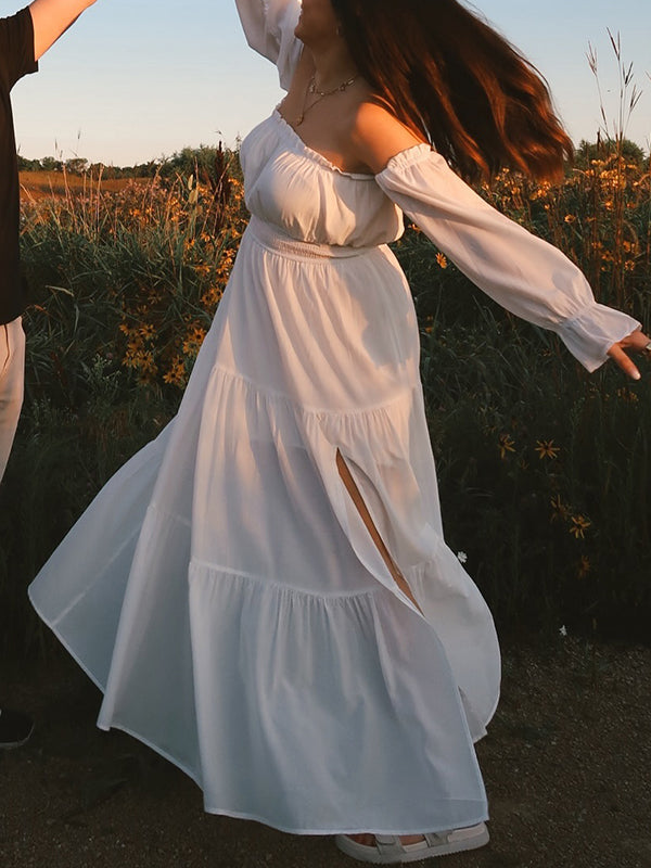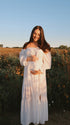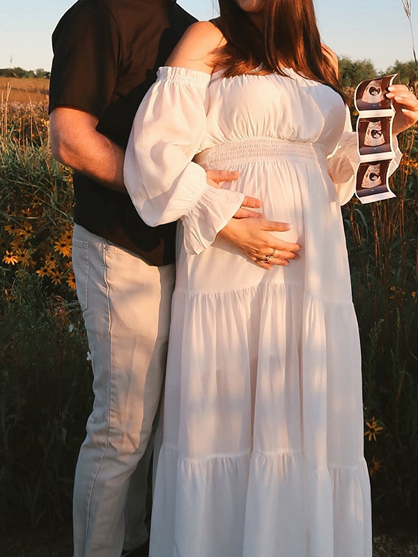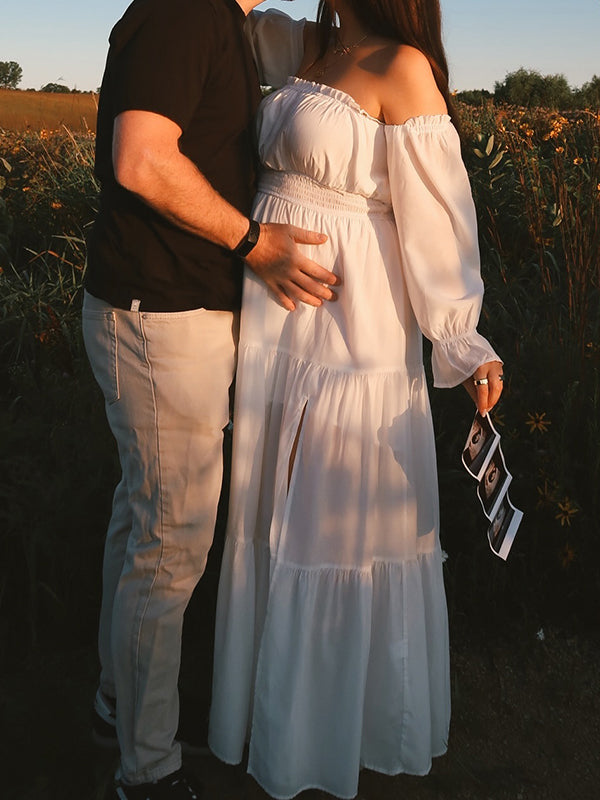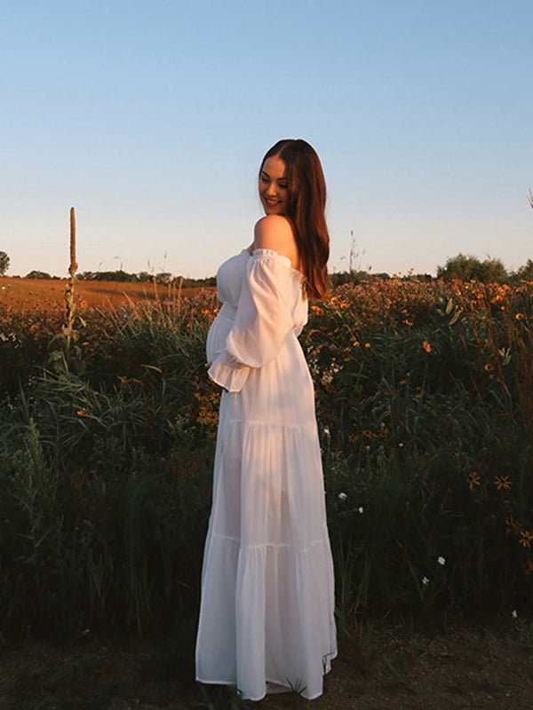 Mumsmode Zwangerschaps Daily Jurken Boheems Fotoshoot Ruches Zijsplit Off Shoulder Maxi Jurken