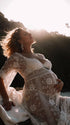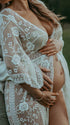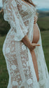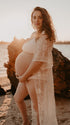 Mumsmode Zwangerschaps Fotoshoot Jurken Boheems Kanten Transparant Zijsplit Golvende Rand Midi Jurken