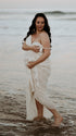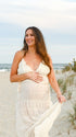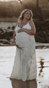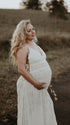 Mumsmode Zwangerschaps Fotoshoot jurk Boheems Vakantie Koord Gedrapeerd Gekreukt Spaghetti Maxi jurk