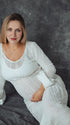 Mumsmode Zwangerschaps Kanten Jurken Elegant Ruches Transparant Fotoshoot Maxi Jurken