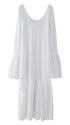 Meet met een zacht meetlint vanaf de naad van het hoogste punt van je schouder & tot aan je zij. De lengte van het kledingstuk wordt gemeten tot aan de zoom.
