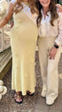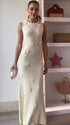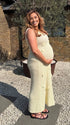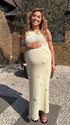 Mumsmode Zwangerschaps Maxi Babyshower Jurk Chique 3D Bloemen Gebreide Beige