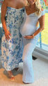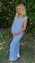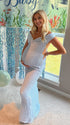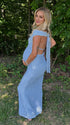 Mumsmode Zwangerschaps Maxi Babyshower Jurk Chique Gekreukt Rugloos Off Shoulder Blauw