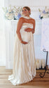 Mumsmode Zwangerschaps Maxi BabyShower Jurk Chique Geplooid Lintje Wit