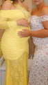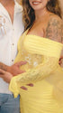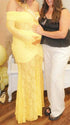 Mumsmode Zwangerschaps Maxi BabyShower Jurk Chique Kanten Patchwork Zeemeermin Off Shoulder Gekreukt