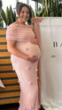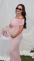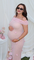 Mumsmode Zwangerschaps Maxi BabyShower Jurk Chique Off Shoulder Tule 3D Bloemen Bodycon