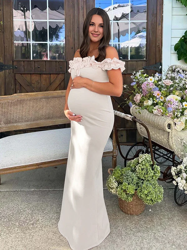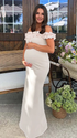 Mumsmode Zwangerschaps Maxi BabyShower Jurk Chique Ruches Off Shoulder Wit