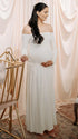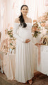 Mumsmode Zwangerschaps Maxi BabyShower Jurk Off Shoulder Geplooid Zijsplit Wit