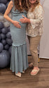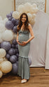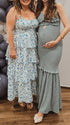 Mumsmode Zwangerschaps Maxi BabyShower Jurk Ruches Bodycon Zeemeermin Blauw