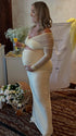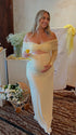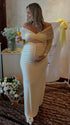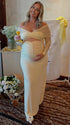 Mumsmode Zwangerschaps Maxi BabyShower Jurk Tule Off Shoulder Uithollen Geel