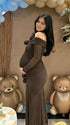 Mumsmode Zwangerschaps Maxi Bodycon Jurk Ceremonie 3D Bloemen Off Shoulder Gekreukt Zeemeermin