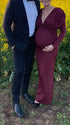 Mumsmode Zwangerschaps Maxi Bodycon Jurk Ceremonie Gekreukt Diep Decolleté