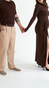 Meet met een zacht meetlint vanaf de naad van het hoogste punt van je schouder & tot aan je zij. De lengte van het kledingstuk wordt gemeten tot aan de zoom.