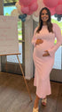 Mumsmode Zwangerschaps Maxi Bodycon Jurk Chique Babyshower Gekreukt Zeemeermin Flare Mouw