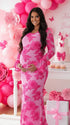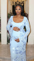 Mumsmode Zwangerschaps Maxi Bodycon Jurk Chique Cocktail Borduursel Bloemenprint Ruches