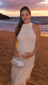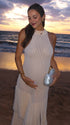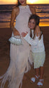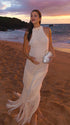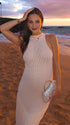 Mumsmode Zwangerschaps Maxi Bodycon Jurk Chique Vakantie Gebreide Kwasten Onregelmatig Fotoshoot