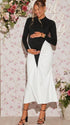 Meet met een zacht meetlint vanaf de naad van het hoogste punt van je schouder & tot aan je zij. De lengte van het kledingstuk wordt gemeten tot aan de zoom.
