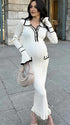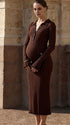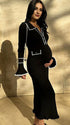 Mumsmode Zwangerschaps Maxi Bodycon Jurk Elegant Werk Ruches Enkele Borst Zakken