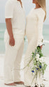 Meet met een zacht meetlint vanaf de naad van het hoogste punt van je schouder & tot aan je zij. De lengte van het kledingstuk wordt gemeten tot aan de zoom.