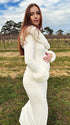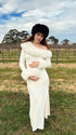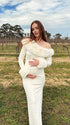Mumsmode Zwangerschaps Maxi Bodycon Jurk Vakantie Dagelijks Harig Zijsplit Off Shoulder