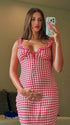 Mumsmode Zwangerschaps Maxi Bodyconjurk Plaid Ruches Koord Rood