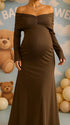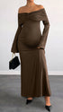 Mumsmode Zwangerschaps Maxi Cocktailjurk Chique Elegant Off Shoulder Gekreukt Trapeze