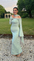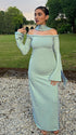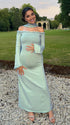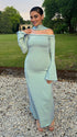 Mumsmode Zwangerschaps Maxi Cocktailjurk Elegant Chique Off Shoulder Kabelbreiwerk Lintje Flare Mouw
