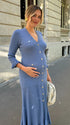 Mumsmode Zwangerschaps Maxi Daily Jurk Elegant Werk Enkele Borst Ruches Bodycon Gebreide