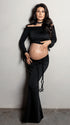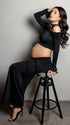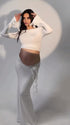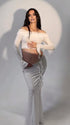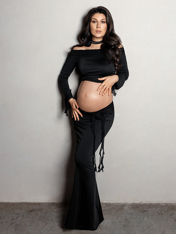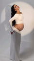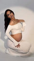 Mumsmode Zwangerschaps Maxi Fotoshoot Jurk Chique Cocktail 2-in-1 Ruches Bloemen Off Shoulder Bodycon
