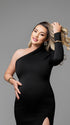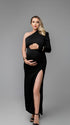 Mumsmode Zwangerschaps Maxi Fotoshoot Jurk Chique Elegant Bodycon Een Open Schouder Zijsplit