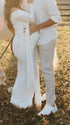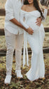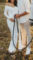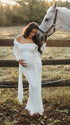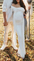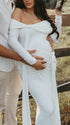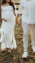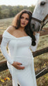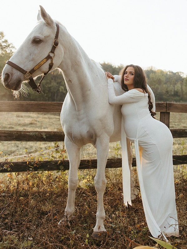 Mumsmode Zwangerschaps Maxi Fotoshoot Jurk Chique Off Shoulder Knooppunt Lintje Zijsplit