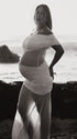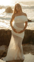 Mumsmode Zwangerschaps Maxi Fotoshoot Jurk Chique Tule Patchwork Transparant Een Open Schouder Gedrapeerd