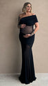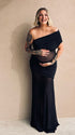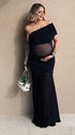 Mumsmode Zwangerschaps Maxi Fotoshoot Jurk Chique Tule Transparant Een Open Schouder Gedrapeerd