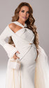 Mumsmode Zwangerschaps Maxi Fotoshoot Jurk Chique Uithollen Patchwork Off Shoulder Bezet